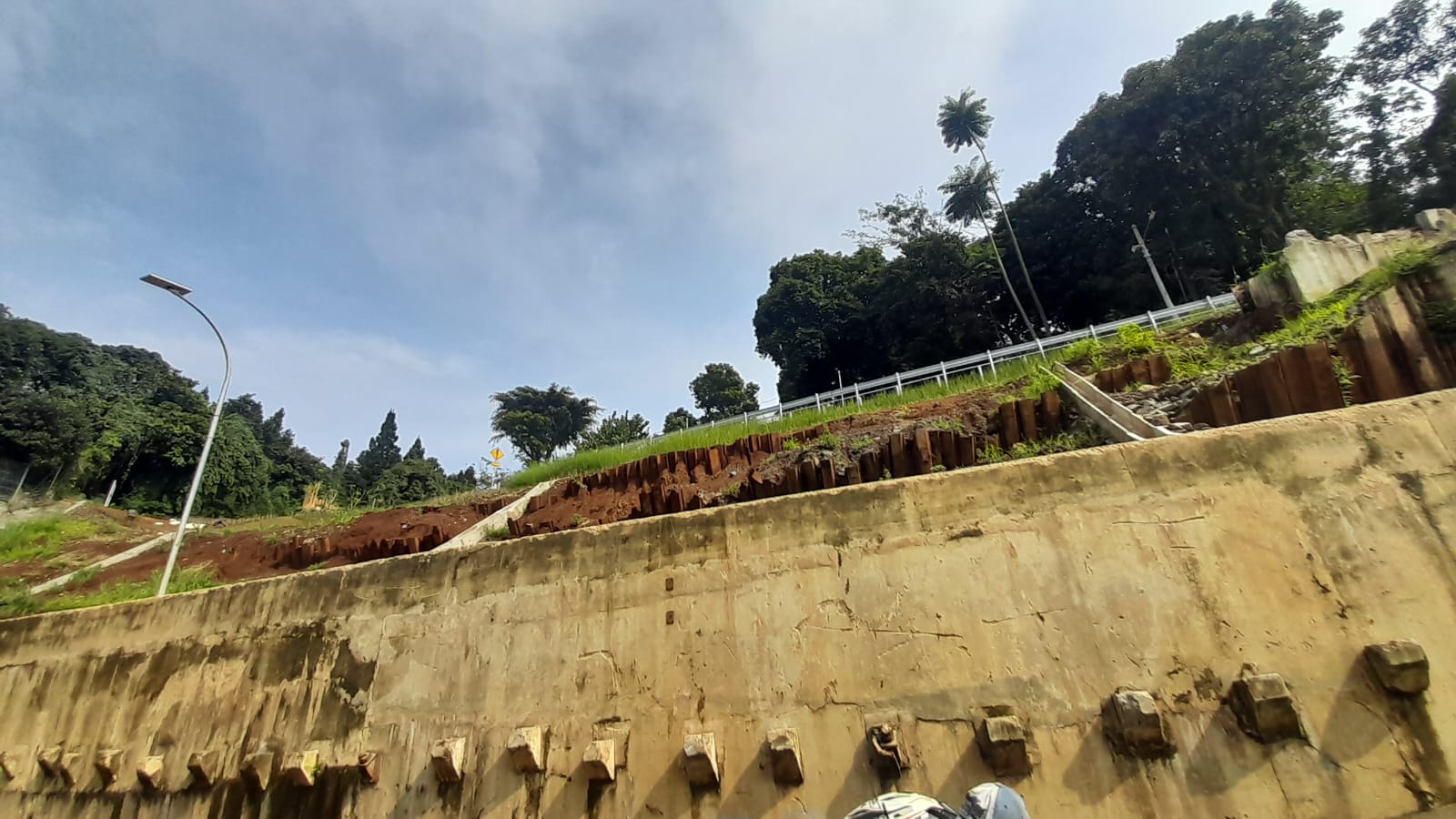 ScreenNewsBogor.com, Batu Tulis, Bogor Selatan – Lereng Di Atas Underpass Batu Tulis Terkikis, Besi Penyangga Mulai Miring